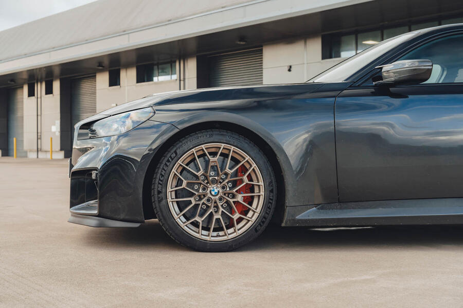در قیاس با ام2 استاندارد هشت سرعته اتوماتیک (که گزینه دستی برای سی اس موجود نیست، اما با توجه به مسائل ارگونومیکی چیدمان سه پدال، شاید این کمبود چندان مهم نباشد)، وزن تایید شده سی اس حدود 30 کیلوگرم کمتر است؛ عمدتاً благодаря رینگ های آلیاژی ساخته شده با رنگ برنزی و尺寸 های متفاوت. اما بسیاری از نمونه های واقعی حتی سبک تر خواهند بود، زیرا این تنها ام2 است که ترمزهای کربن سرامیک اختیاری دارد و همچنین اگزوز تیتانیومی ویژه که توسط بخش ام توسعه یافته و به فهرست قطعات عملکردی اضافه شده، که بدون شک وزن کمتری نسبت به سیستم استاندارد دارد. این قطعه را می توان در نمایندگی نصب کرد و موتور شش سیلندر خطی توربوشارژ دوگانه (با 50 اسب بخار و 37 پوند فوت بیشتر) را به سطح صدای مورد نظر مهندسان می رساند، اگر محدودیت های تاییدیه اجازه می داد.
