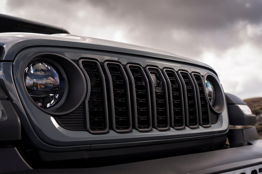 نسل JL رانگلر بسیاری از نشانههای طراحی سنتی جیپ را دریافت میکند، از جمله جلوپنجره هفتشیاری که ادای احترامی به مدل اصلی CJ است